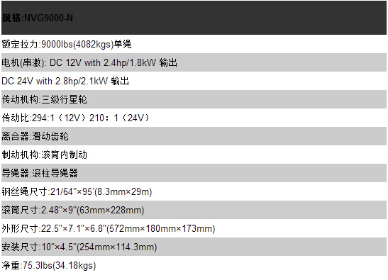 NVG9000-N电动绞盘是台湾川崎经销的主要产品之一,产品质量有保证,下面我们对其作业的参数给出如下标准: